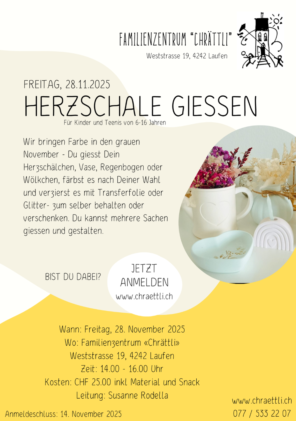 Anmeldung zum "Herzschale giessen" - Freitag, 28.11.2025